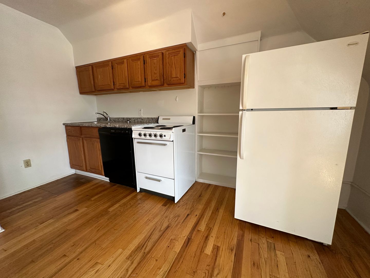 Fully equipped kitchen with a refrigerator, dishwasher, and electric stove