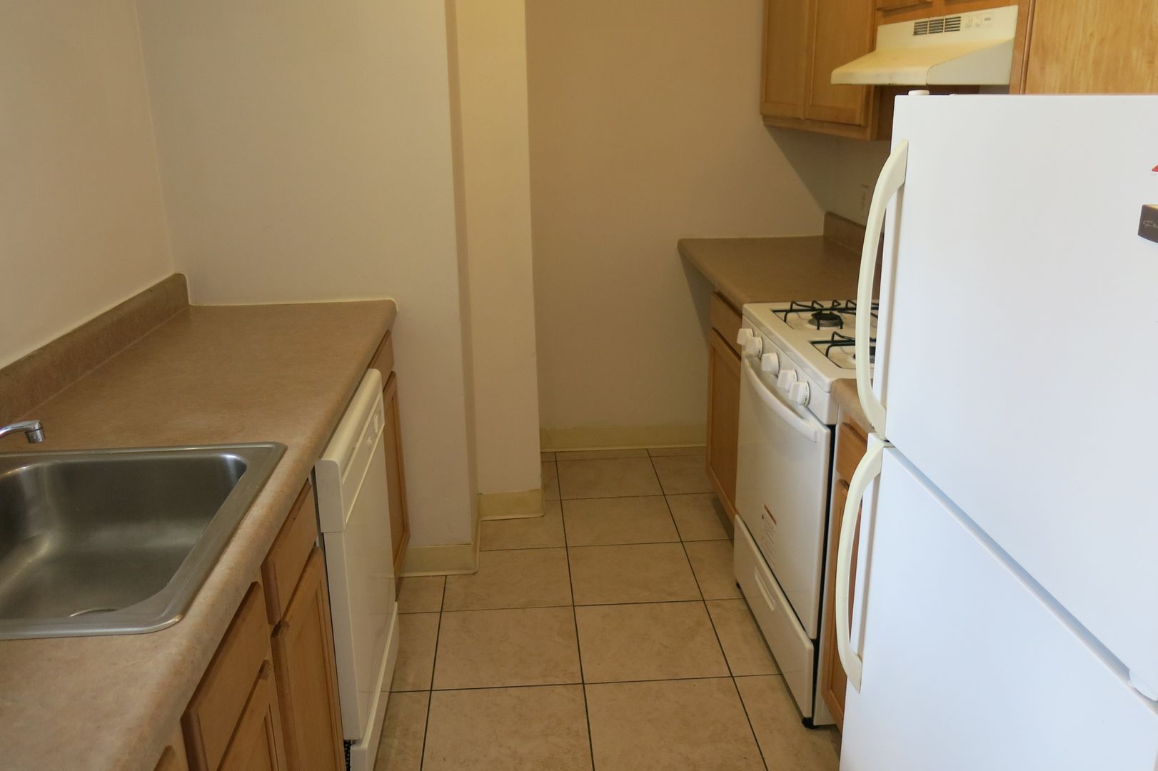 Fully equipped kitchen featuring a fridge, dishwasher, and gas stove