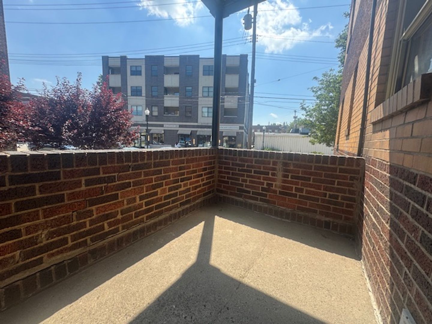 Charming covered balcony off the living room, perfect for morning coffee