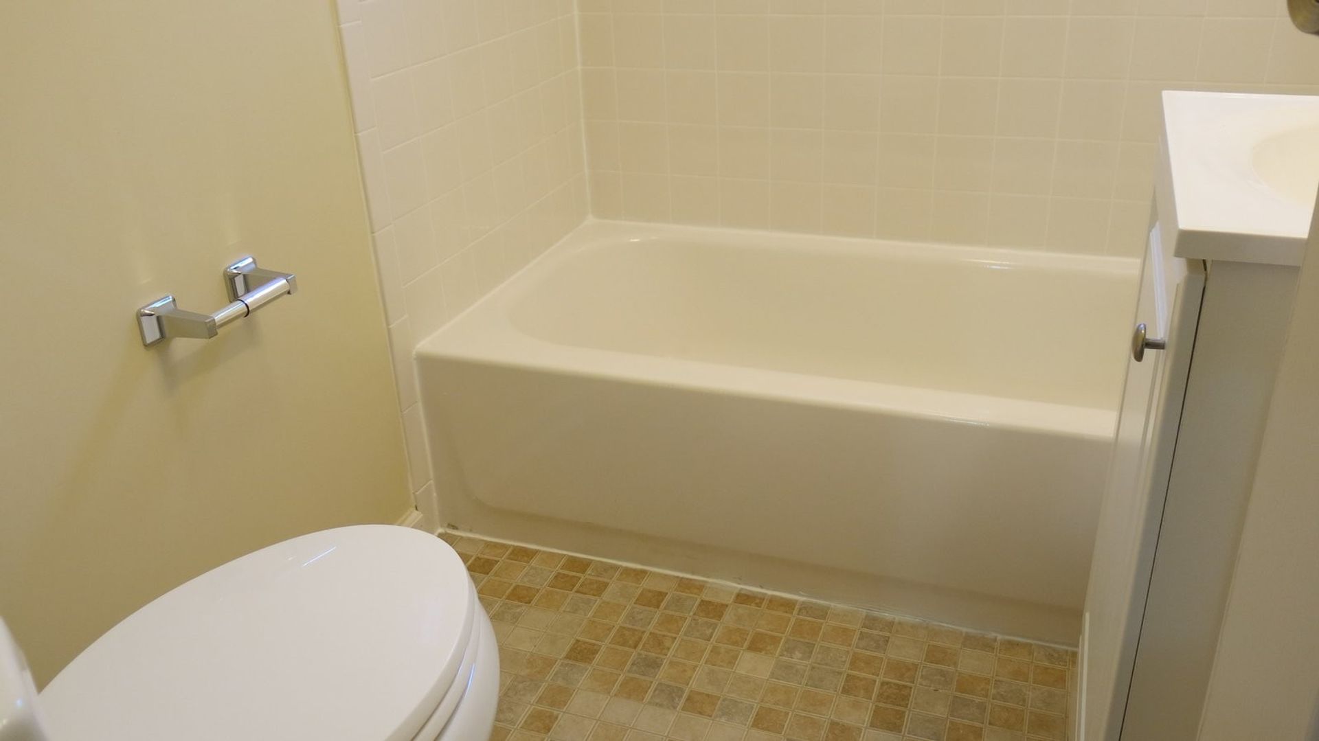 Stylish ceramic tile floors throughout for easy maintenance