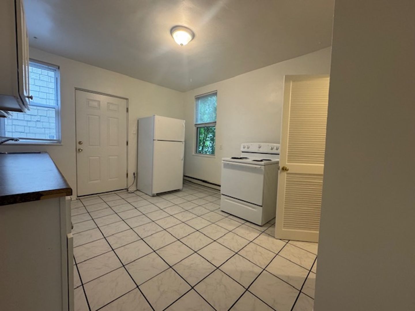 Spacious Kitchen: Cook and entertain with ease in an equipped eat-in kitchen featuring a large pantry, sleek tile, a fridge, an electric stove, and a dishwasher.
