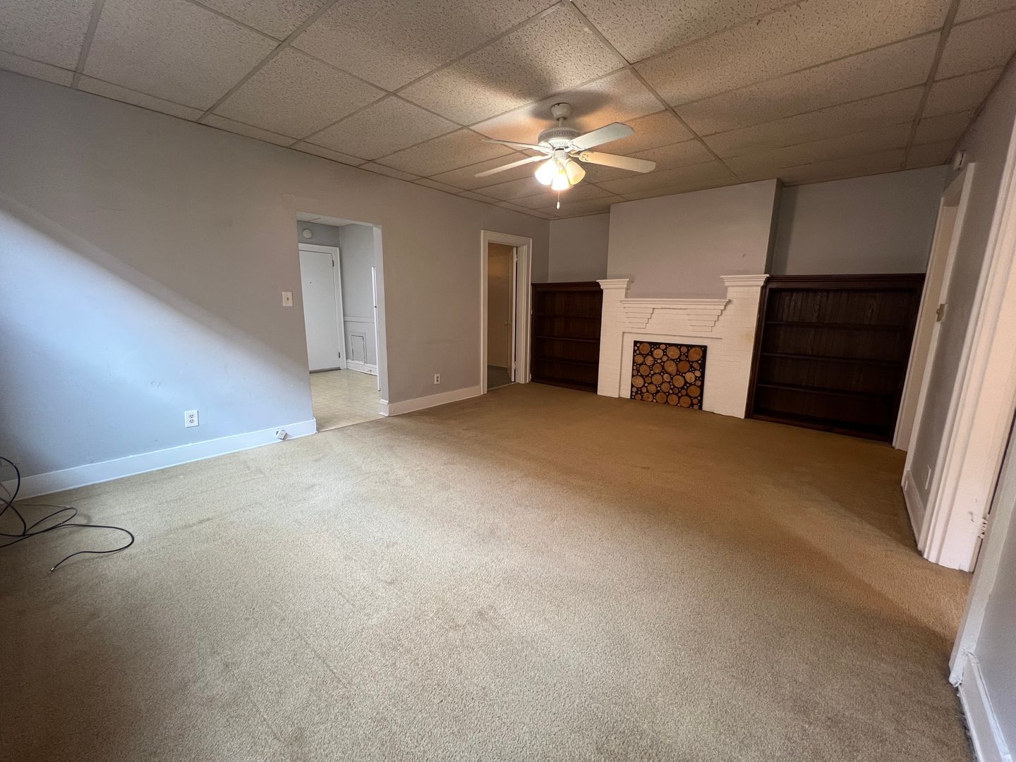Charming built-in cabinetry and a decorative fireplace for added character