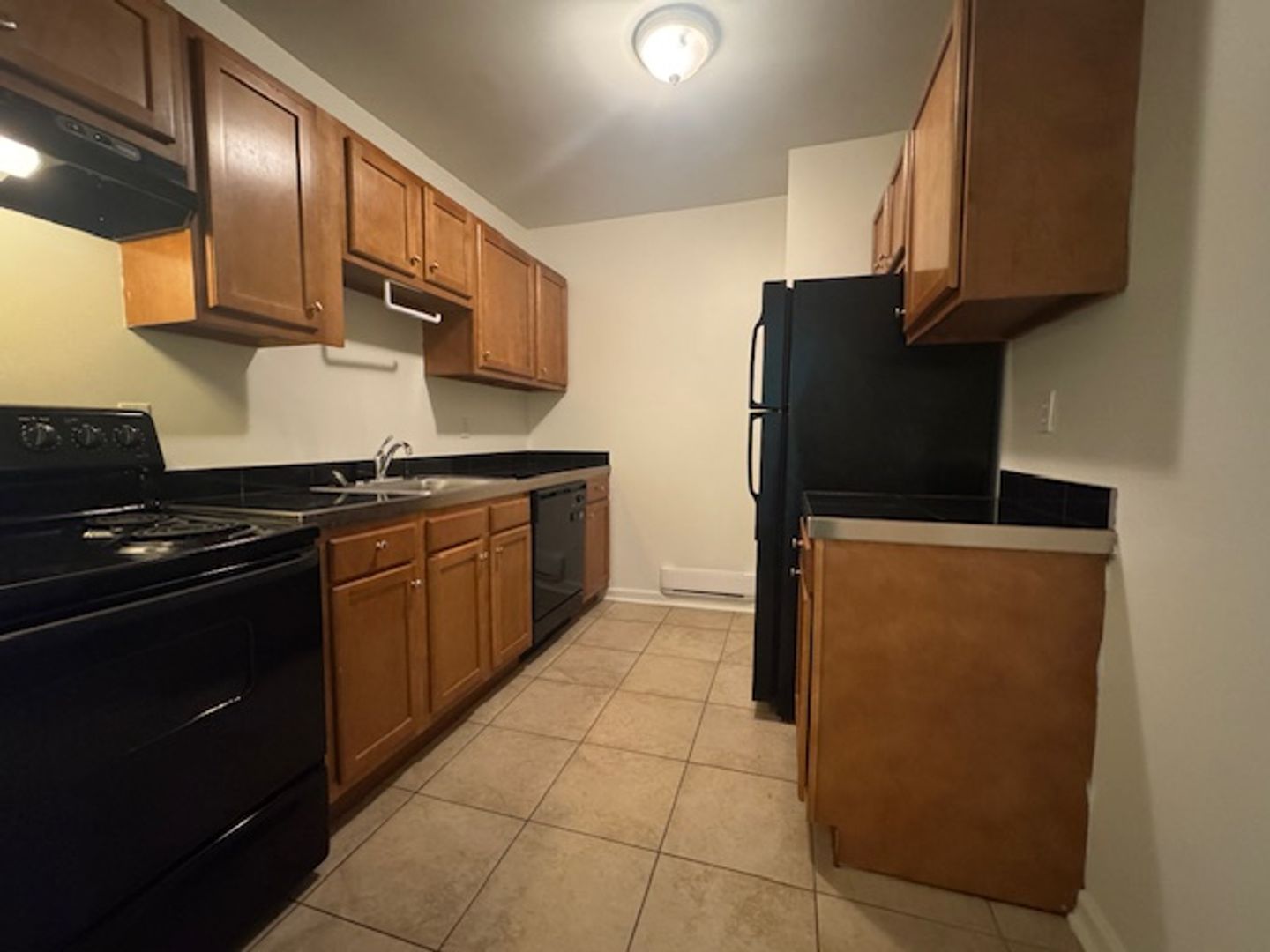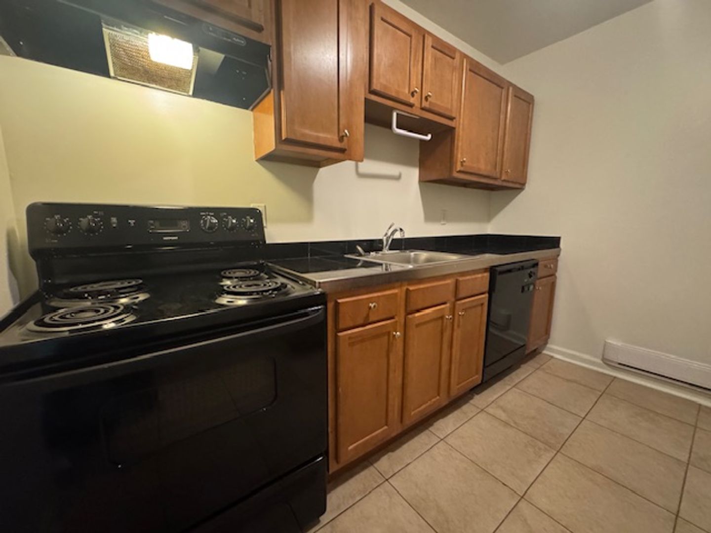 - Updated kitchen with refrigerator, electric stove, and dishwasher
