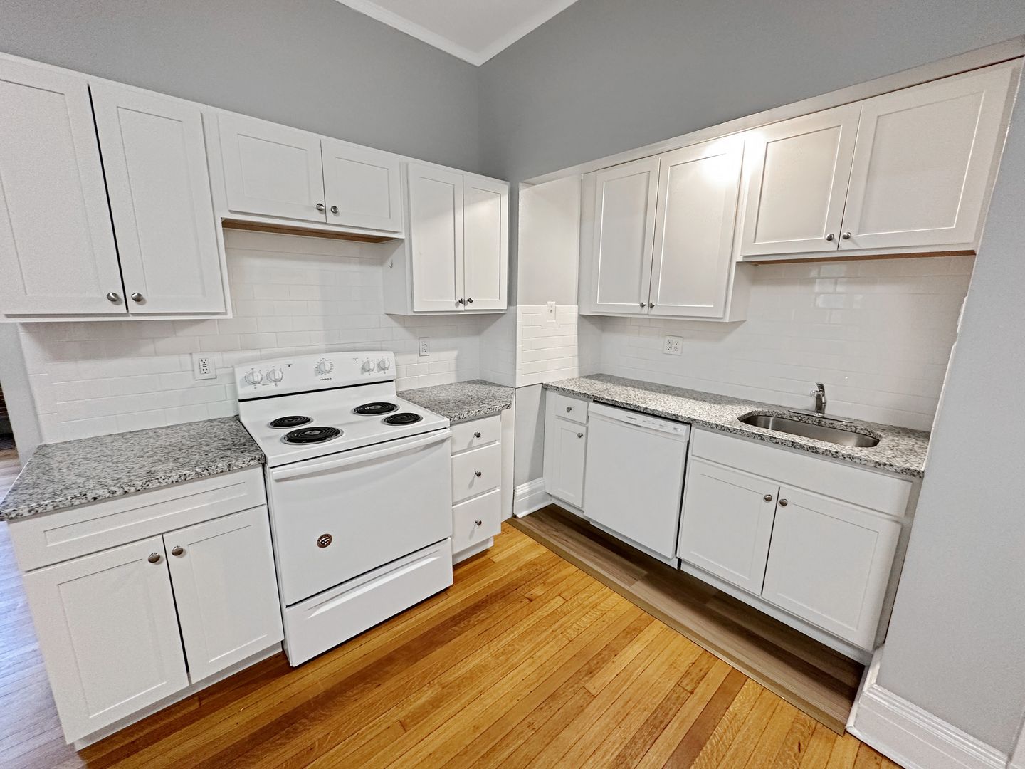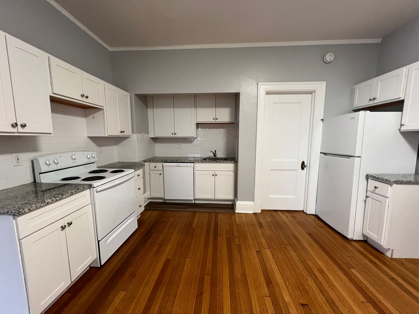 Fully updated, roomy kitchen equipped with a refrigerator, electric stove, and dishwasher