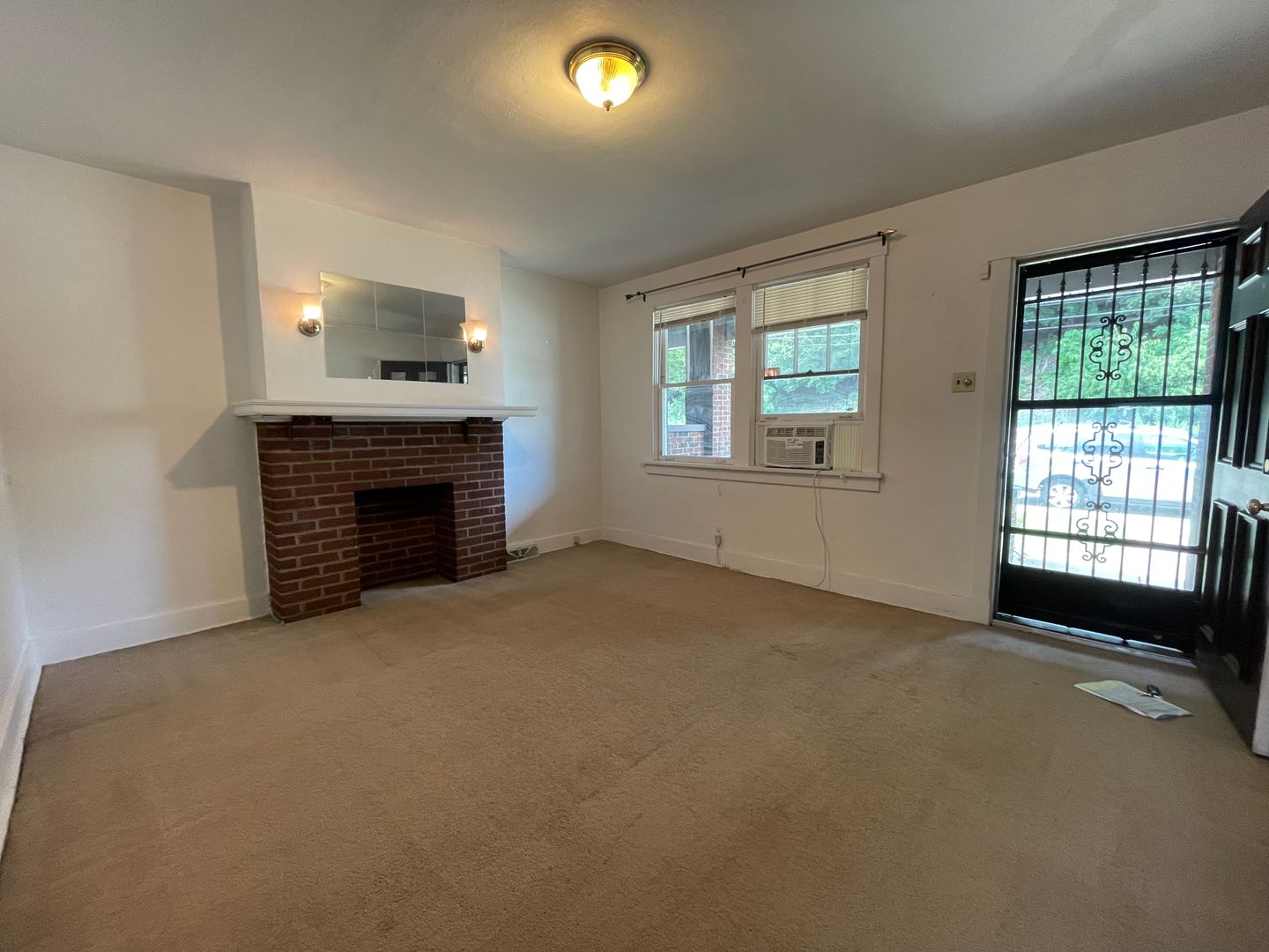 -Spacious Living Room: Features a decorative fireplace for added character.