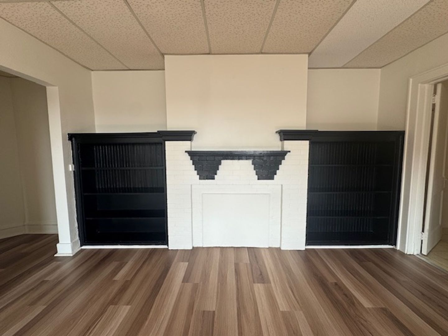 Beautiful built-in cabinetry and a decorative fireplace add character and charm