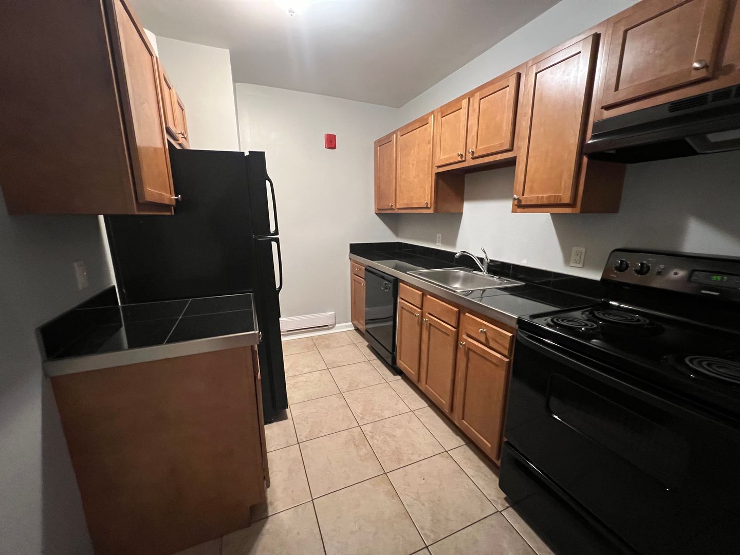 - Updated kitchen with fridge, dishwasher, and electric stove